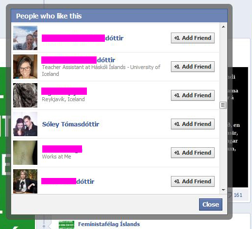 Hér er svo skjáskot af fésbókarvegg Femínstafélags Íslands þar sem Sóley Tómasdóttur líkar við ummæli móður sinnar, Guðrúnar Jónsdóttur sem kynnt voru af FÍ þann 4. des 2011:
