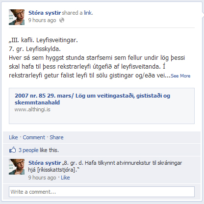 „Við eigum aldrei að sætta okkur við ólöglegan rekstur og ef það hangir ekki uppi starfsleyfi þarna þá á að loka þessu STRAX. Hættum að líta undan og gerum kröfur um bætt siðferði í þessu auma þjóðfélagi..“