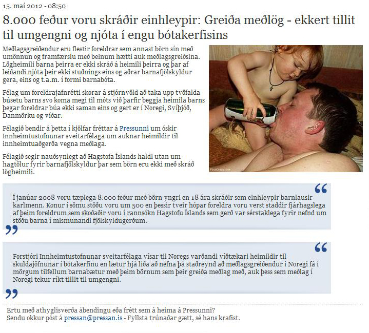 Ég hefði undir öllum venjulegum kringumstæðum fagnað allri umræðu um eitthvað af þessu lögfesta misrétti sem karlar búa við. Frétt Pressunnar um bága stöðu umgengnisforeldra er dæmi um mjög þarfa umræðu að mínu mati en þeir birtu nú í morgun frétt undir fyrirsögninni: „8.000 feður voru skráðir einhleypir: Greiða meðlög – ekkert tillit til umgengni og njóta í engu bótakerfisins“.
