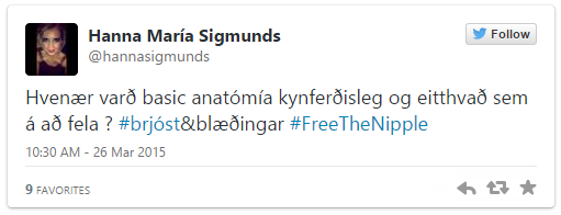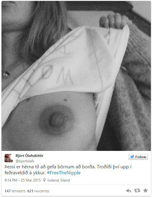 Það dugði svo ekkert minna en berbrjósta þingkona til að leiða mig í ljósið hvað þetta varðar. Það var hún Björt Ólafsdóttir, þingkona Bjartrar Framtíðar sem sendi eftirfarandi fræðsluerindi frá sér út á veraldarvefinn: